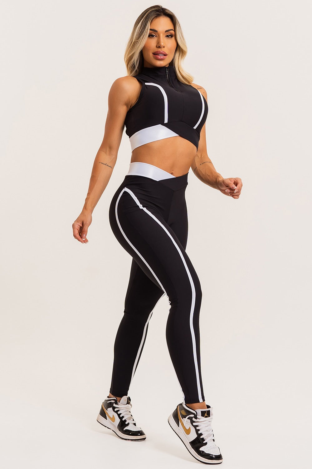 Versatile and performance-driven, the Ultra Flex Active Set includes a structured cropped top with a zip closure and contouring seams, paired with high-compression leggings designed for maximum support. Both pieces feature advanced fabric technology for comfort, durability, and protection.