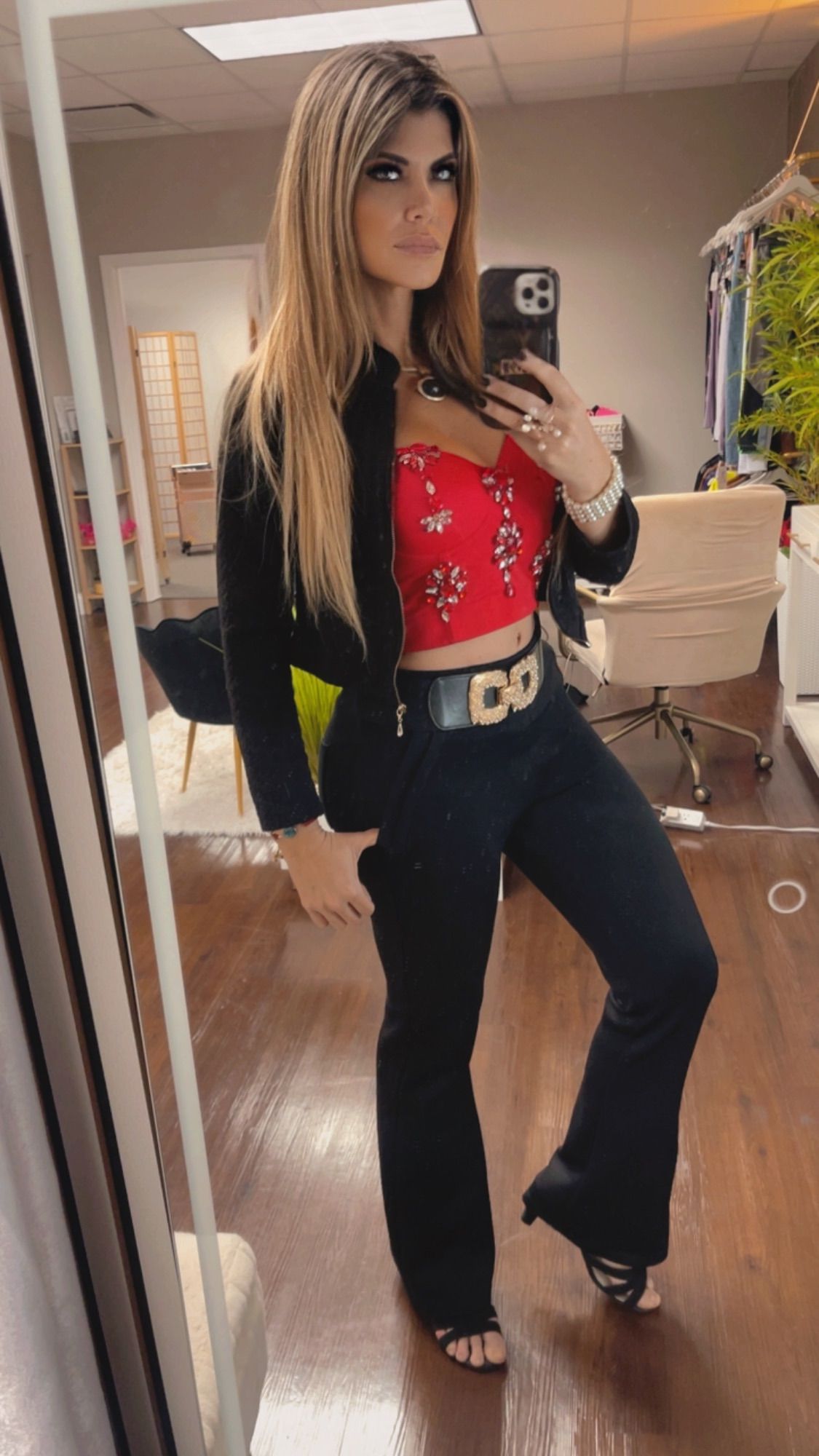 Designed to make an entrance. Covered in light-catching crystals, this top delivers bold shine and modern allure. The sleek silhouette enhances your shape while the crystal details bring instant glam. Perfect for nights out and statement looks that won’t go unnoticed.