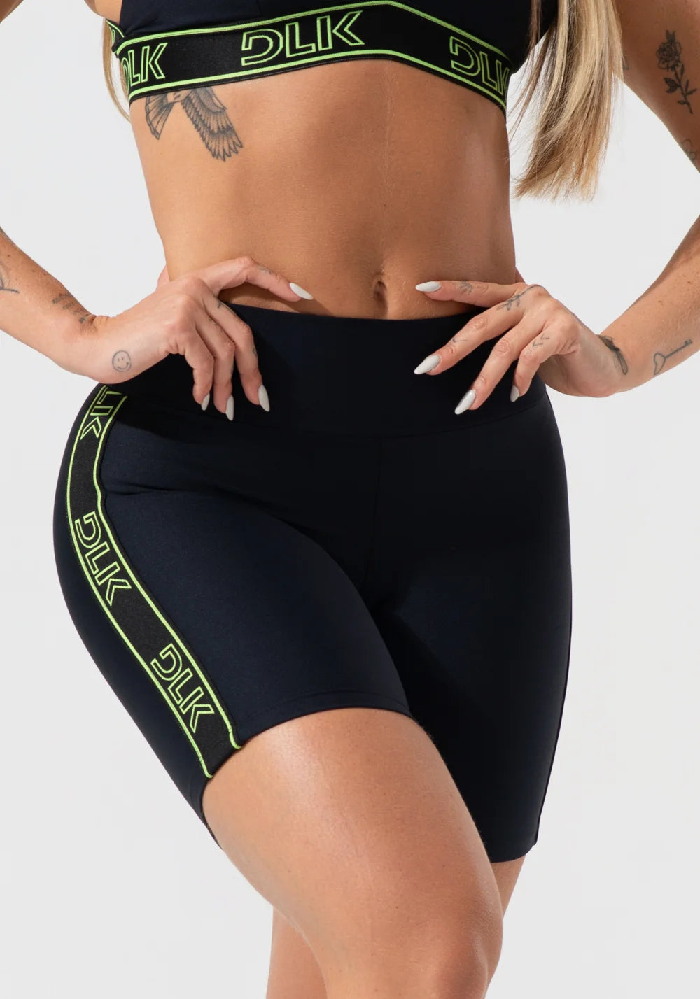 Shorts: Wide black and green side elastic, medium compression, ideal length for freedom of movement