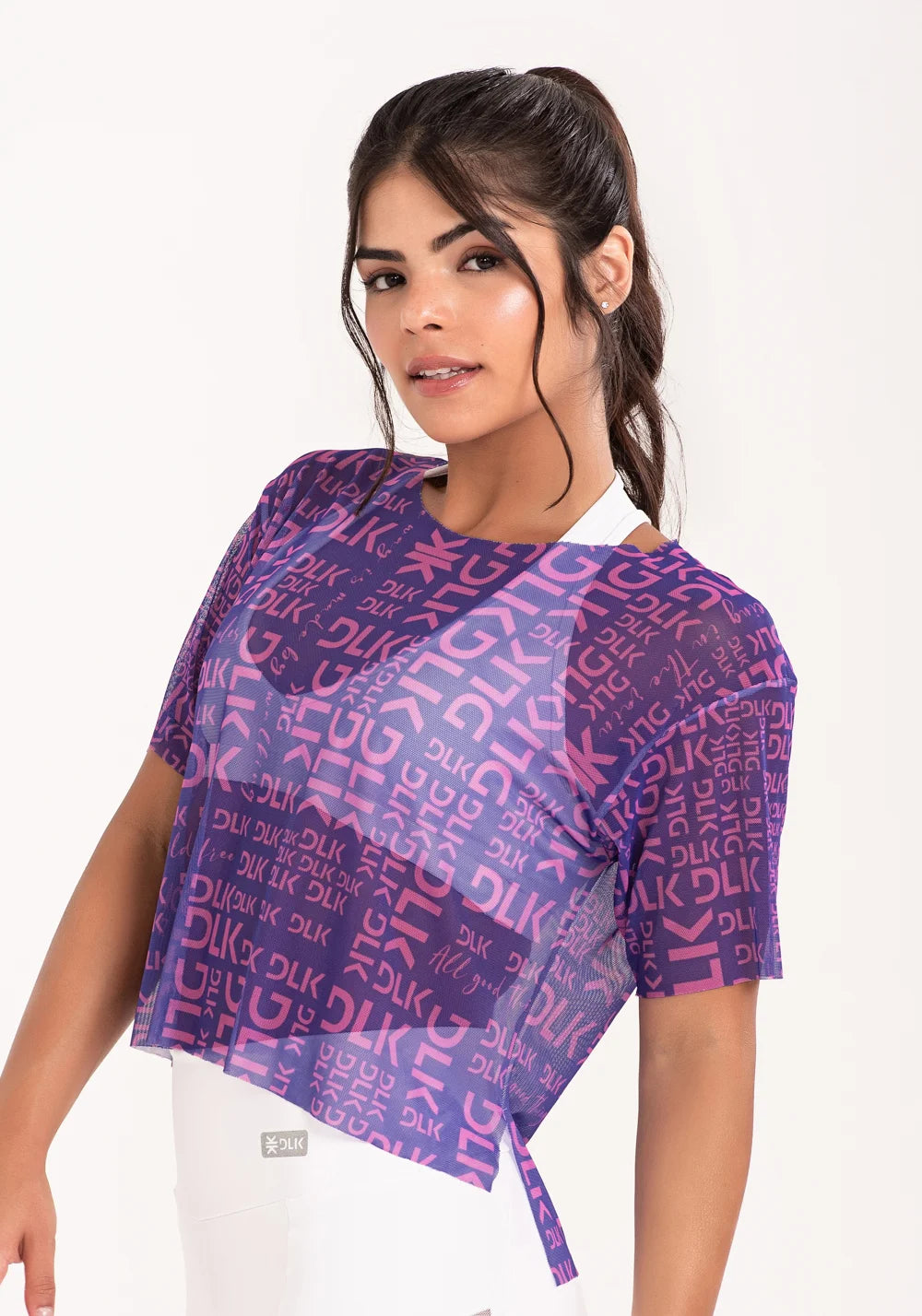 Women’s Sheer Mesh Top – Pink and Purple Phrases Print – Printed